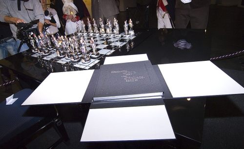 Типография «Дитон» изготовила большой (31х31) альбом, подробно рассказывающий о проекте «Шахматы. 1812 года». Комплект драгоценных шахмат, посвященный Отечественной войне 1812 года, выполнен ювелирным домом «Анна Нова» для музея-панорамы «Бородинская битва».