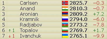Если за финиш брать последние 3 партии, то боевой была лишь предпоследняя (выигрыш у Гири). В двух остальных партиях Левон предлагал ничью на 13-ом и 11-ом ходах, соответственно. Действительно ли нужна Левону и его почитателям такая "спокойная" игра? Тем более, комментируемая онлайн. Как бы Загребельному опять не пришлось через несколько минут переключаться на одну из партий Непомнящий – Иванчук или Карлсен – Гельфанд, которые, по моему мнению, обещают быть гораздо более зрелищными.