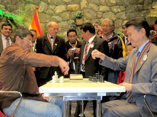 — Я хочу поблагодарить величайшего гроссмейстера, чемпиона мира Анатолия Карпова за то, что в ФИДЕ я пришел именно по его просьбе и протекции, — сказал Илюмжинов. — В ноябре 1995 года в Париже проходила генассамблея Всемирной шахматной федерации. Будучи президентом Калмыкии, я прибыл в Париж с докладом о том, как готовится Элиста к 33-й Всемирной олимпиаде. На этой ассамблее должны были пройти выборы очередного президента ФИДЕ. Вот тогда от Анатолия и последовало неожиданное предложение баллотироваться на этот пост. В то время меня никто не знал в шахматном мире. И можно сказать, что с легкой руки Анатолия Евгеньевича на протяжении вот уже 15 лет я и нахожусь на этой должности.
