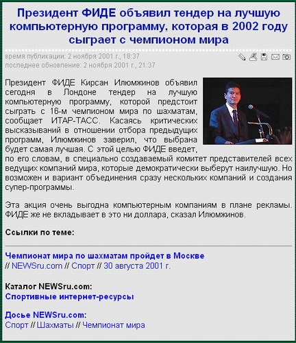 Илюмжинову как президенту ФИДЕ не забуду ничего, как из предыдущего поста можете заключить. Он - моя работа, одна из пренеприятнейших составляющих работы, уже много лет.