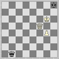 | В данном конкретном эндшпиле черные, ИМХО, делали довольно легкую ничью после 69... Kg5 (вместо Qb1). Держим короля перед пешкой как можно ближе к ней и не даем активизироваться (стать впереди своей пешки) королю белых, тогда все пешечные получаются ничейные. |
