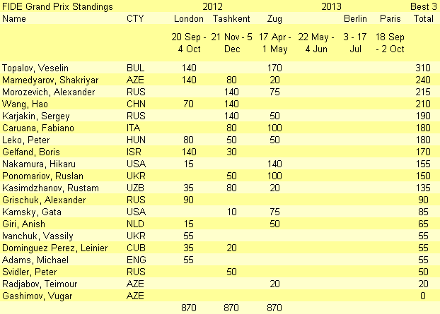 Совсем без шансов - Гири, Касымджанов, Леко, Домингес. Но как раз они на общий успех едва ли рассчитывали. Ещё у Камского шанс очень слабый.