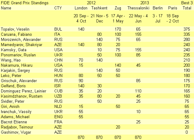 | Придётся-таки Топалову поднапрячься, если не сейчас, то в июле. Если оба раза - в серёдке, то путёвочка может и уплыть. Уж Каруана-то во всяком случае не провалится. |