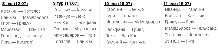 6-9. Морозевич, Гири, Ван Юэ, Топалов – по 3,5;