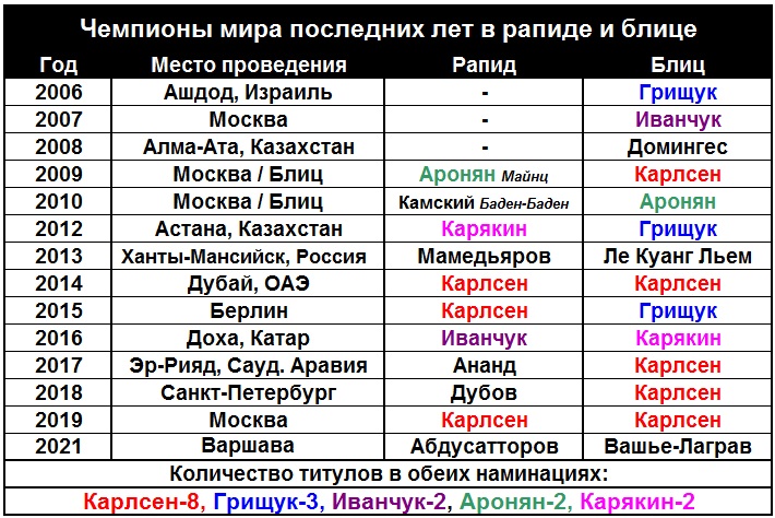 MaxML: Ананд в свои лучшие годы выигрывал в рапид почти всё, но там может раз в год был турнир по рапиду, он раз 12 что ли выиграл, ну много, не помню.