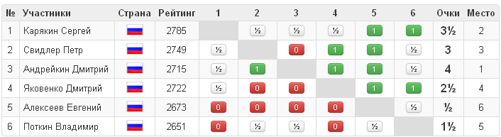 Андрейкина поздравляю! кажется это первая его очень крупная победа и - так держать. возможно(и я на это надеюсь) у нас появится еще один "супергросс", а не просто игрок 2700+. На Яна увы, надежд у меня все меньше.