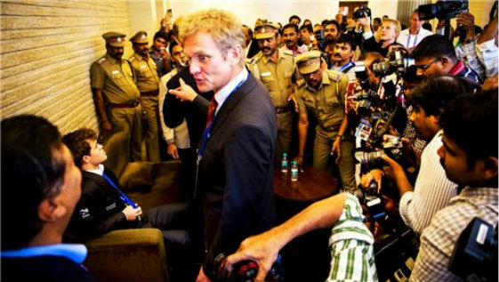 Около 50 индийских журналистов создавали угрожающую панику. Они толкали и пихали друг друга - после награждения был полнейший хаос.