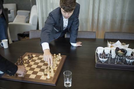 Какое-то мгновение чувствуется легкое беспокойство во взгляде вошедшего молодого человека. Он моментально заметил, точнее зарегистрировал какую-то неточность, ошибочность. Поверхностно поприветствовав нас, он напрямик направился к шахматной доске с расставленными фигурами в импозантном помещение для встреч крупного инвестиционного банка в центре Осло. Инвестиционный банк является одним из многих его спонсоров, и он любезно предоставил бизнес-офис, чтобы провести эту встречу с Politiken.
