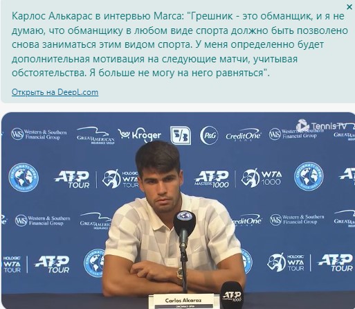 Алькарас проиграл во втором круге ЮС опен номеру 74 рейтинга, играл слабо. Джокович проиграл в третьем круге находящемуся в отличной форме Алексею Попырину, который перед этим выиграл мастерс в Канаде. До этого почти за 7 лет карьеры в АТР Алексей ни в шлемах, ни в мастерсах дальше третьего круга не проходил.