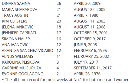 Список как список, такие появляются 52 раза в году - каждый понедельник). Просто Каро фигурирует там на четвёртой позиции впервые. А пафос в отношении Штеффи, Мартины, Эверт, Корт и пр. можно и поубавить. Они конечно молодцы, все в курсе и слышали об этом 1000 раз). На практике народ, зная историю, больше интересуется действующими спортсменами.