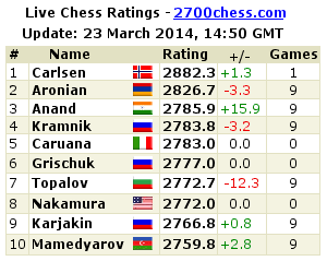 33 Andreikin ..... RUS 2712,5. +3,5 ..... 9 |