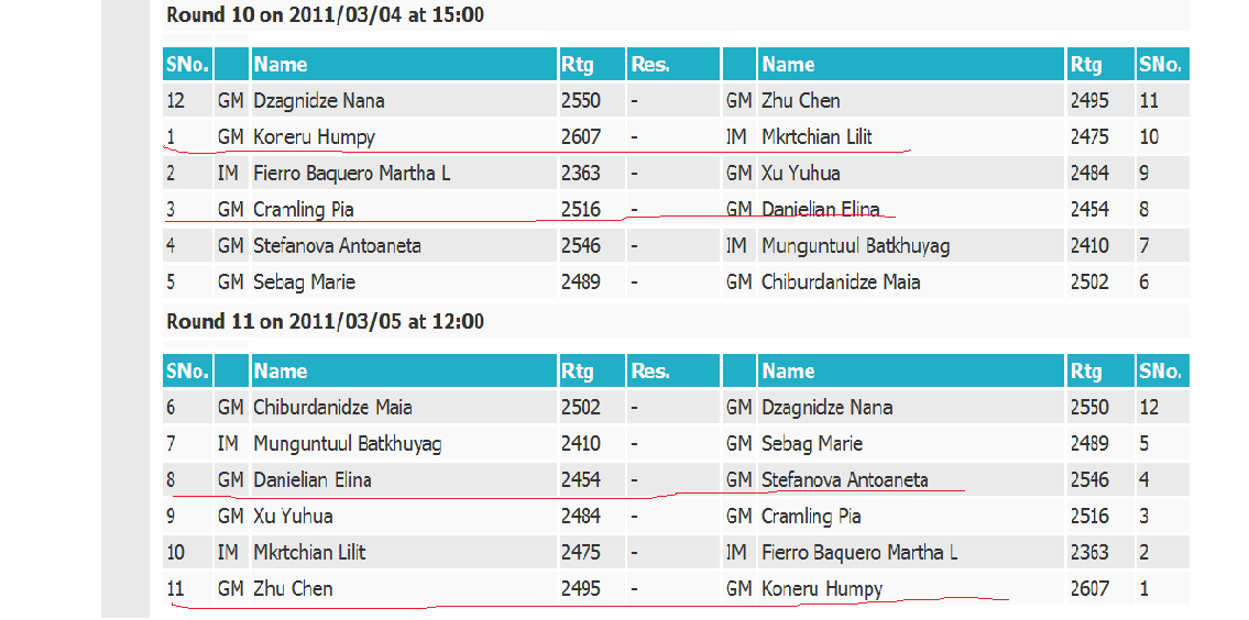 | Roger: А с кем играют Элина и Хампи в последних турах? |