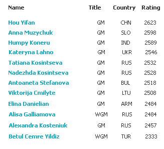| Чемпионка мира китаянка Хоу Ифань стала недосягаемой для своей главной конкурентки грузинки Наны Дзагнидзе в общем зачете серии Гран-при ФИДЕ 2009/10 среди женщин.(http://chessmoscow.ru/) |