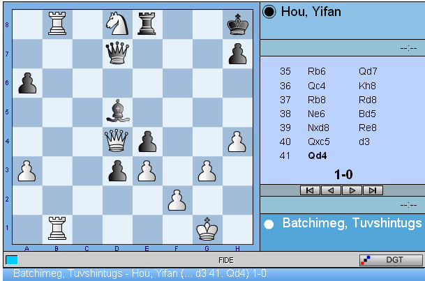 Татьяне известно до 22 хода как минимум, потому что она такую партию проиграла норвежцу с невысоким рейтингом два года назад. А Хоу играла черными с Надеждой на ростовском Гран-при, там было 16.Се2, а не 16.Сd3, но дальше там в схожем ключе идет.