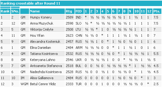 2 GM Tatiana Kosintseva 2517 - GM Yifan Hou 2617 11