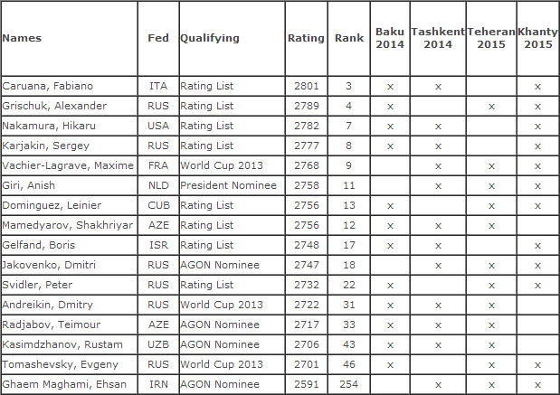 | The winner and second placed player overall of the Grand Prix Series will qualify for the Candidates Tournament to be held in the last quarter of 2015 or the first half of 2016. |