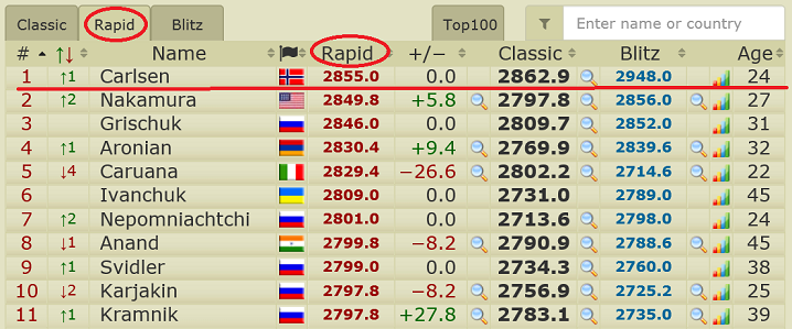 Только рейтинги в блиц и рапид появились недавно. А так и Ананд, и Каспаров, и Карпов, и более ранние Чемпионы имели все шансы тоже занимать 1-е место в рейтинге по всем этим 3-м показателям.