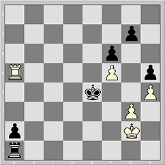 Здесь вместо очевидного 54.Kh2 допустим и любой ход ладьи по линии "а" (конечно, с практической точки зрения это не нужно, и все же...), например: 54.Ra8 Kxf5 55.Ra5+ Kg6 56.Ra6 Kh6 57.Kh2 - черным не образовать проходную по вертикали "f", поэтому получается ничья. В свое время аналогичный эндшпиль с переменой цвета не смог выиграть Владимир Белов у Михаила Кобалия (Питер 2001).