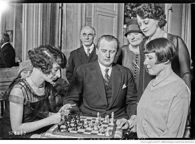 Только фотография эта - из небольшого турнира в Париже того же года, тоже убедительно выигранного Алехиным. Алехин-то черными играет.