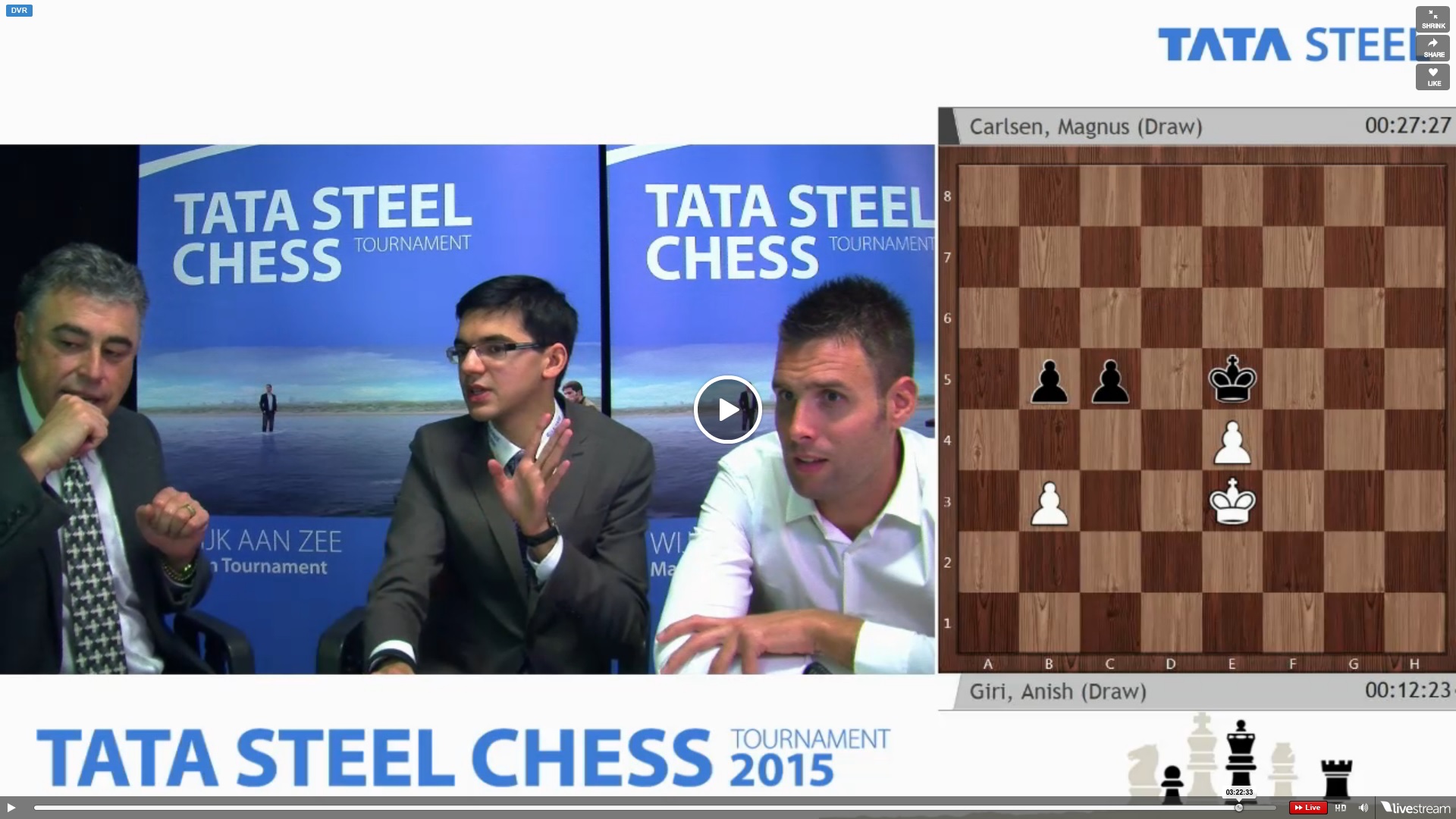 7. A Giri vs Carlsen = 36 2013 Tata Steel E60 King's Indian Defense