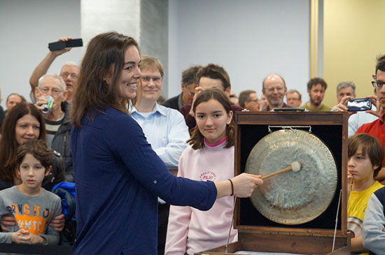 | А гонг там на каждом туре стоит, или ей специально принесли? |