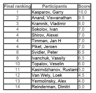 Был бы лишь рад за ВМ, хоть и маловероятно это, если бы ему удалось выйти на 9 из 13. Проблема Иванчука и остальной братии) в том, что и 9 очков, чует сердце, может быть недостаточно. Чемпион мира, похоже, постепенно выходит на уровень игры, созвучный тому, который он уже показывал в Вейке в 2013г, где он набрал 10 очков - повторение абсолютного рекорда Вейка Каспарова в 1999г.