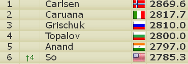 И кстати уж. Со - единственный наверху, кто 1 февраля точно побьет свой рейтинговый рекорд (может также Гири, Войташек может достичь 2750). Вопрос только - на сколько.