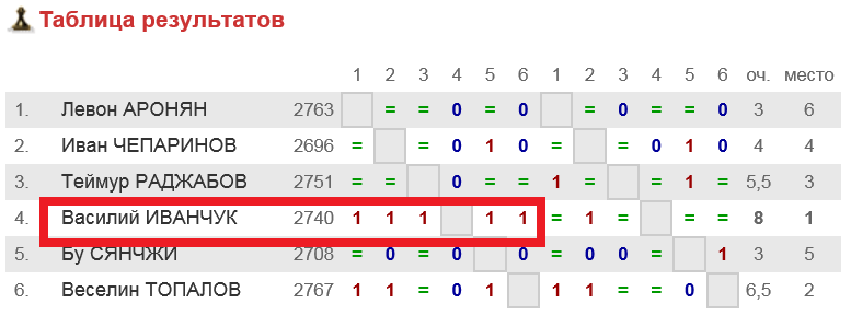 Аронян: Рейтинг ФИДЕ 1/1-2015 = 2797 ожидаемый результат: 7,50 из 13
