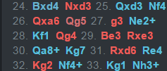 , которую, право слово, привычнее наблюдать в блице из нокаута девушек, при этом 2700-тник, правда, имеет 15 минут на 15 ходов, но его соперник, топ-теннер, имеет почти 40 - и при этом все же ошибается больше и грубее - вопросы у таких, как я, полудилетантов, возникают...