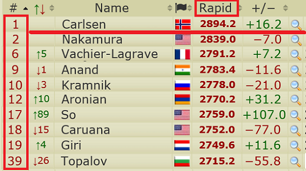 Так вот, 2652 - это практически его начальный рапид-рейтинг, приравненный стандартному рейтингу шестилетней давности, когда он сыграл свои первые обсчитанные 4 рапид-партии (март 2012, матч с Мейером).