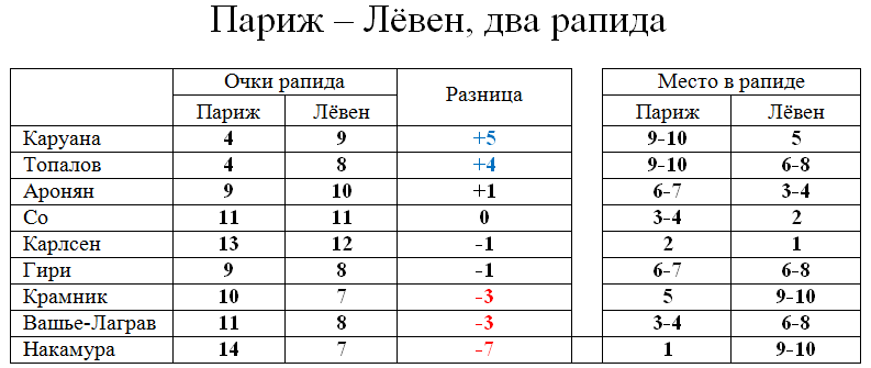 старик: Итоговое положение участников в турнире по рапиду на этапе Grand Chess Tour в Лёвене (победа - 2 очка, ничья - 1, поражение - 0):
