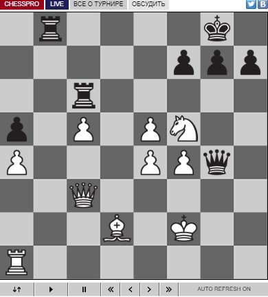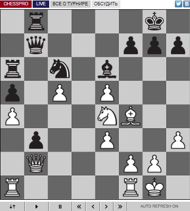 У Фирузджи был еще один шанс пойти по той же схеме, если бы он взял на g5 своим конем с шахом. Взятие слоном позволило Каруане прорваться ходом 18…b5 и получить контригру. Вскоре Фирузджа потерял свое преимущество, а затем был переигран в оставшейся части. |