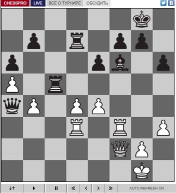 Svidler pointed out a beautiful fantasy line with the stunner 37.Be5!!, sacrificing the bishop and leaving the queen for oblivion on d1, but disconnecting the enemy forces.