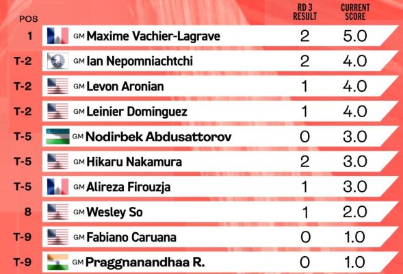 Firouzja wins a critical game against Nakamura! The American number-one had earlier escaped in the middlegame, but 33...b6?? gave Firouzja another chance. 33...bxa6 was instead equal.
