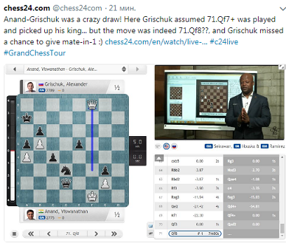 Это к томy (раз уж самому не понять), что МВЛ или Аронян, у которых тоже 11 очков сегодня, вполне могут выйти на замену "тому парню", и, проделав нечто аналогичное, вернуть угасающую интригу соревнованию.