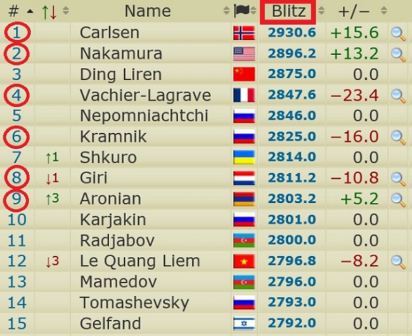 Но у нас не только рапид, где Каруана в принципе способен "выстрелить" хотя бы и через неделю в Бельгии, у нас ещё и блиц, в котором Каруана занимает 80-ую строчку рейтинг-листа, а рейтинг Топалова ещё ниже.