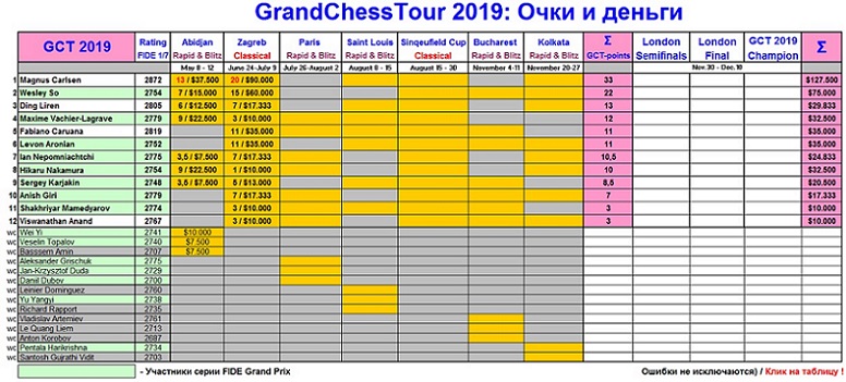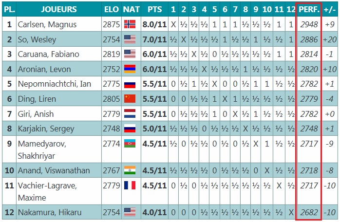 Интересно узнать перфоманс игроков на этот турнир, особенно Карлсена. |