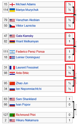 Музычук разошлась чёрными миром с Адамсом, у Иванчука слон с пешкой против арабского скакуна