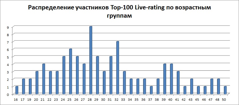 | Расцвет шахматиста - где-то район 30. Но не для всех, конечно (вспомнился Пономарёв). |