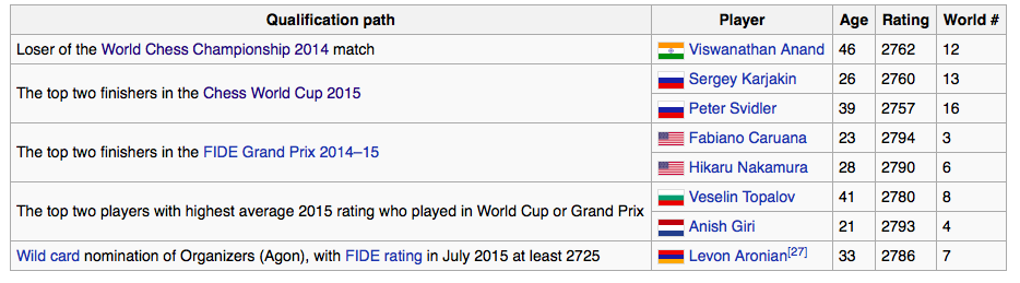 В первый раз согласен с Вами, но номинанты по рейтингу - неизбежная дань общественному мнению. Потому что именно из-за несоответствия списка участников текущему рейтингу ломается больше всего копий, в том числе недобросовестными журналистами. Посмотреть рейтинг лист - самое простое и доступное занятие, даже если шахматами раз в 2 года интересуешься.