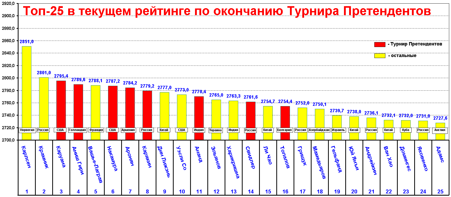 Топ-25 в текущем рейтинге по окончанию Турнира Претендентов 2016.