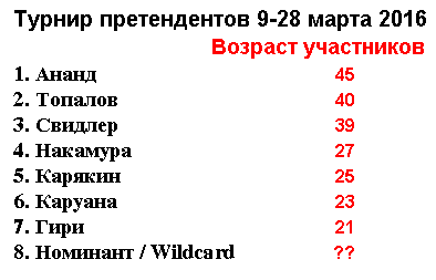 Ананд будет. Гири поменяет федерацию и будет, у него #паспортнаш. И три китайца.