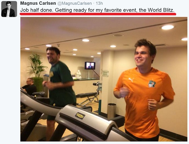 Carlsen reveals he has prepared for the event with Kramnik. "That seemed to benefit him too!" |