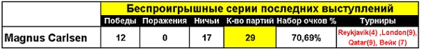 | Всё нормально, ещё две победы и у Карлсена будет +5. А это первое место. Жаль что, Эльянов не дотянул ещё три хода. |