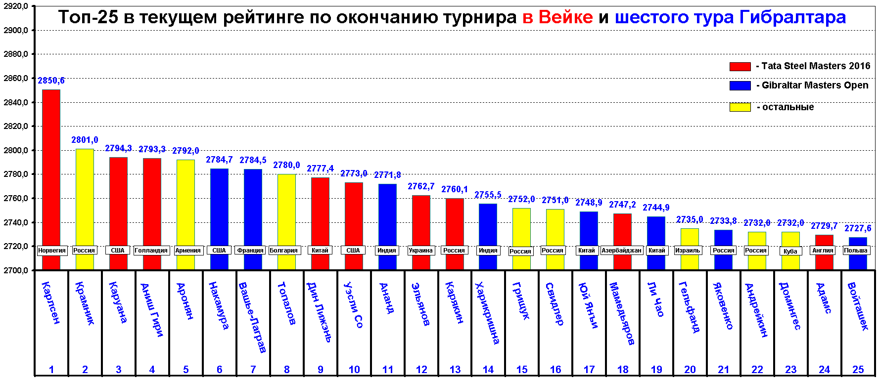 Топ-25 в текущем рейтинге по окончанию турнира в Вейке и шестого тура Гибралтара.