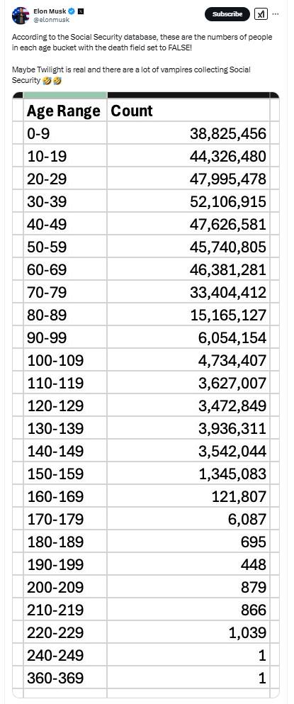 тут надо еще пояснить. Social Security number это номер социального страхования, основной идентификатор граждан США и тех, кто имел разрешение на работу в сша (неграждан). Например, студенты приезжающие по программе work and travel тоже получают SS номер. Они проводят в штатах три месяца, и потом уезжают, не становясь гражданами. Этот номер не означает что его носитель получает пособия. Это означает что он может претендовать на пособие или пенсию (наверное это не совсем корректное высказывание, но примерно так). То что они числятся живыми, может также означать что не было отображено событие смерти носителя. Что логично если человек не живет в штатах и никто специально не известил о смерти. Но какой-то части из тех кто умер, но не числится таковым в этой базе до сих пор возможно платят пенсию, она либо оседает на счету в банке (ну или чеки где-то накапливаются если пенсию платят чеками) либо кто-то ее получает за умершего