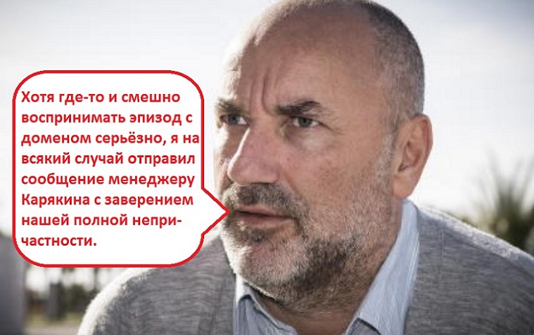 fanatold: Уважаемые scherb и manovar, мне кажется, Вы неверно поняли Якоба. Прочтите внимательно! Он вовсе не говорил об игре КАРЯКИНА с Фаби, Максимом или ВБ - он говорил об игре с ними КАРЛСЕНА!