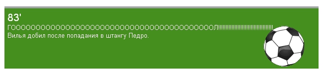 Мне нравится мысль дель Боске о том, что на данный момент Вилья номер один в мире. А Лапорта, быть может, рад, что купил его вовремя, не то пришлось бы доплачивать несколько десятков миллионов.) |