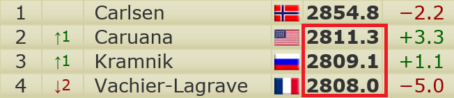 Jacob08: Отчаянная борьба развернулась за каждую пядь земли 0,1 ЭЛО между МВЛ, Фаби и ВБ в надежде на №2 в мире. Магнус наблюдает ... в бинокль. :-)