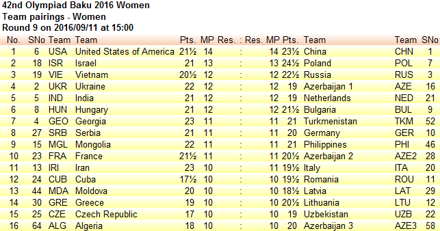 | В 9-ом туре китаянки обыграют США, в 10-ом - разгромят победителя пары Польша-Израиль.. А с россиянками, возможно, вообще не сыграют. |